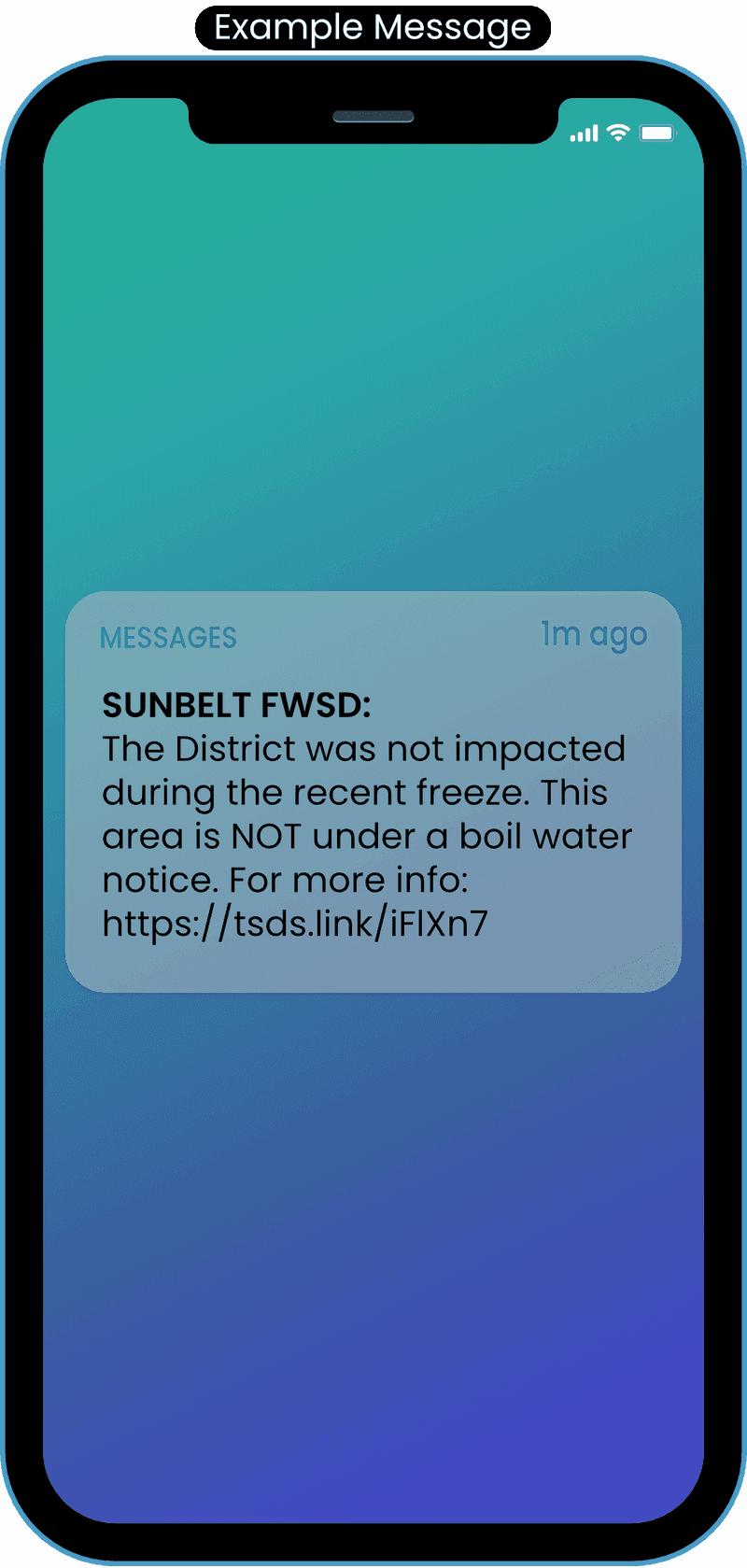 Residents registered for this free service will receive text and/or email notification explaining the basics of the situation with a short link to the news post on the District website with more complete details.